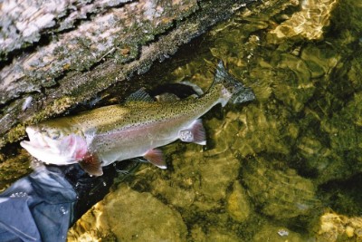 An der Weissen Traun (Siegsdorf) im Oktober 2004: Regenbogenforelle ca. 45 cm
